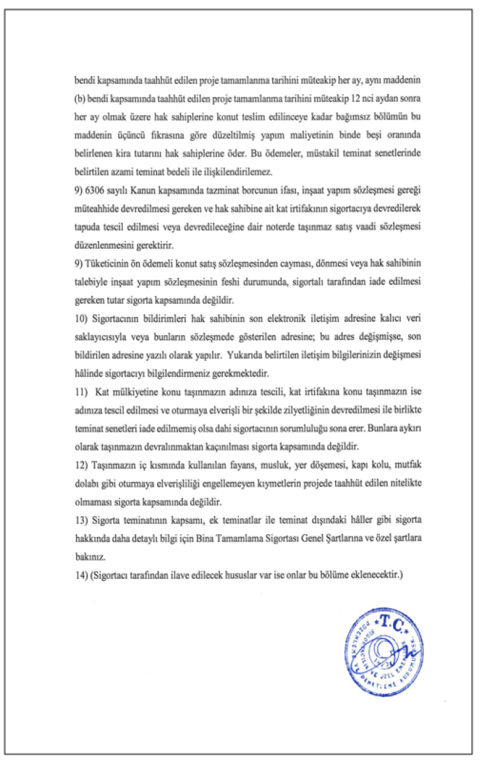 EK 16 - Bina Tamamlama Sigortası Genel Şartları (14.06.2024 e itibaren geçerli)
