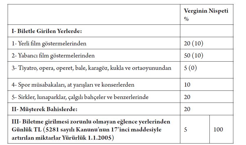 Tablo 4: Eğlence Vergisi (Biletle Girilen Yerlerde)…