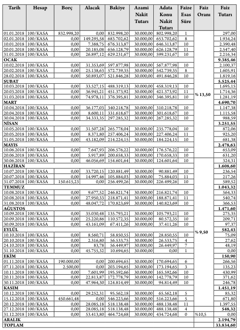 KDV yönünden de hesaplanan faiz tutarları üzerinden %18 oranında KDV hesaplanarak…