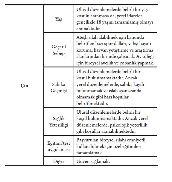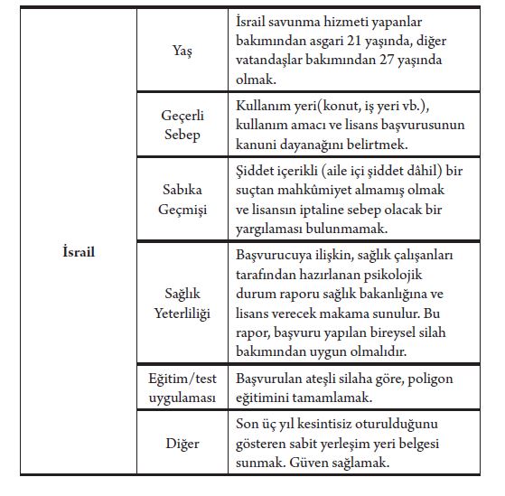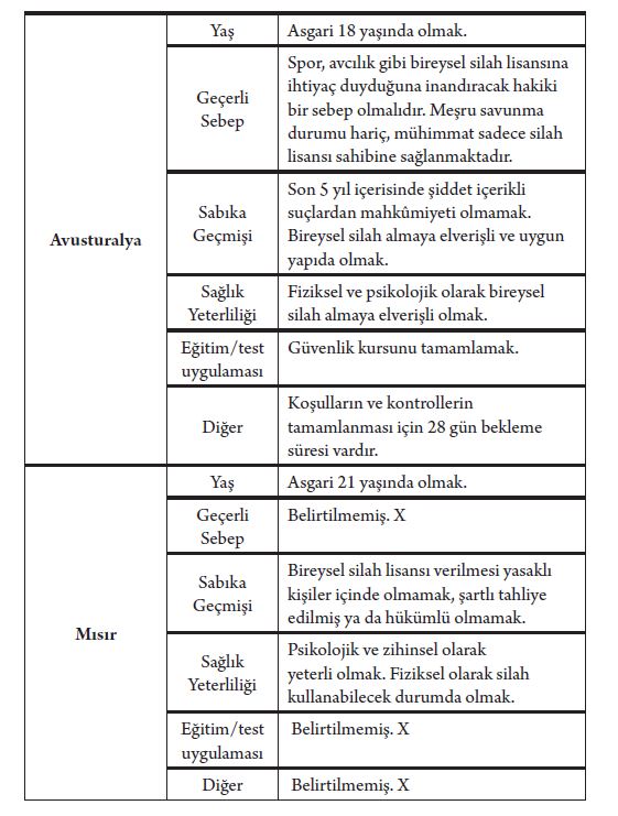 Tablo 3.1 Bireysel Silahlanmada Genel Sınırlamaların Bazı Ülkelerdeki Durumu(158)…