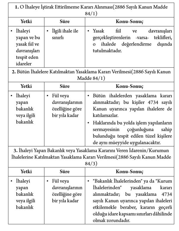 Tablo 11: 2886 Sayılı Devlet İhale Kanunu Uyarınca Verilen Yasaklama Kararlarında Konu ve Yetki Unsurları ile Özellikli Durumlar…