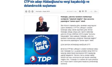 Haber 2: “CTP’nin adayı Hüdaoğluna’na vergi kaçakcılığı ve dolandırıcılık suçlaması”…