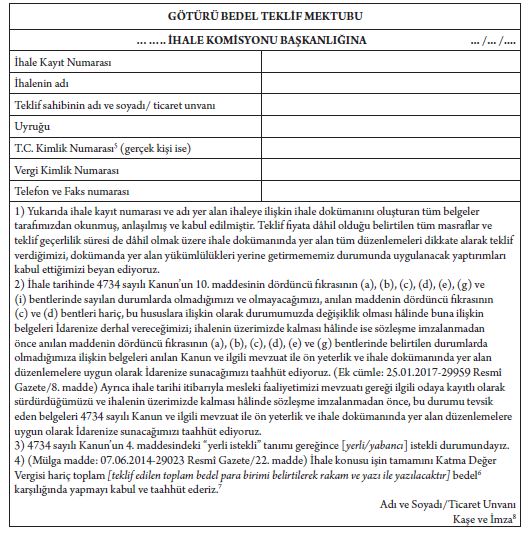 EK. 3: Götürü Bedel Teklif Mektubu (Standart Form - KİK015.2/H)…