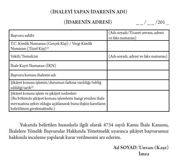 EK. 1-C/1: 4734 Sayılı Kamu İhale Kanun’da Düzenlenen İdarî Başvuru Yollarına…